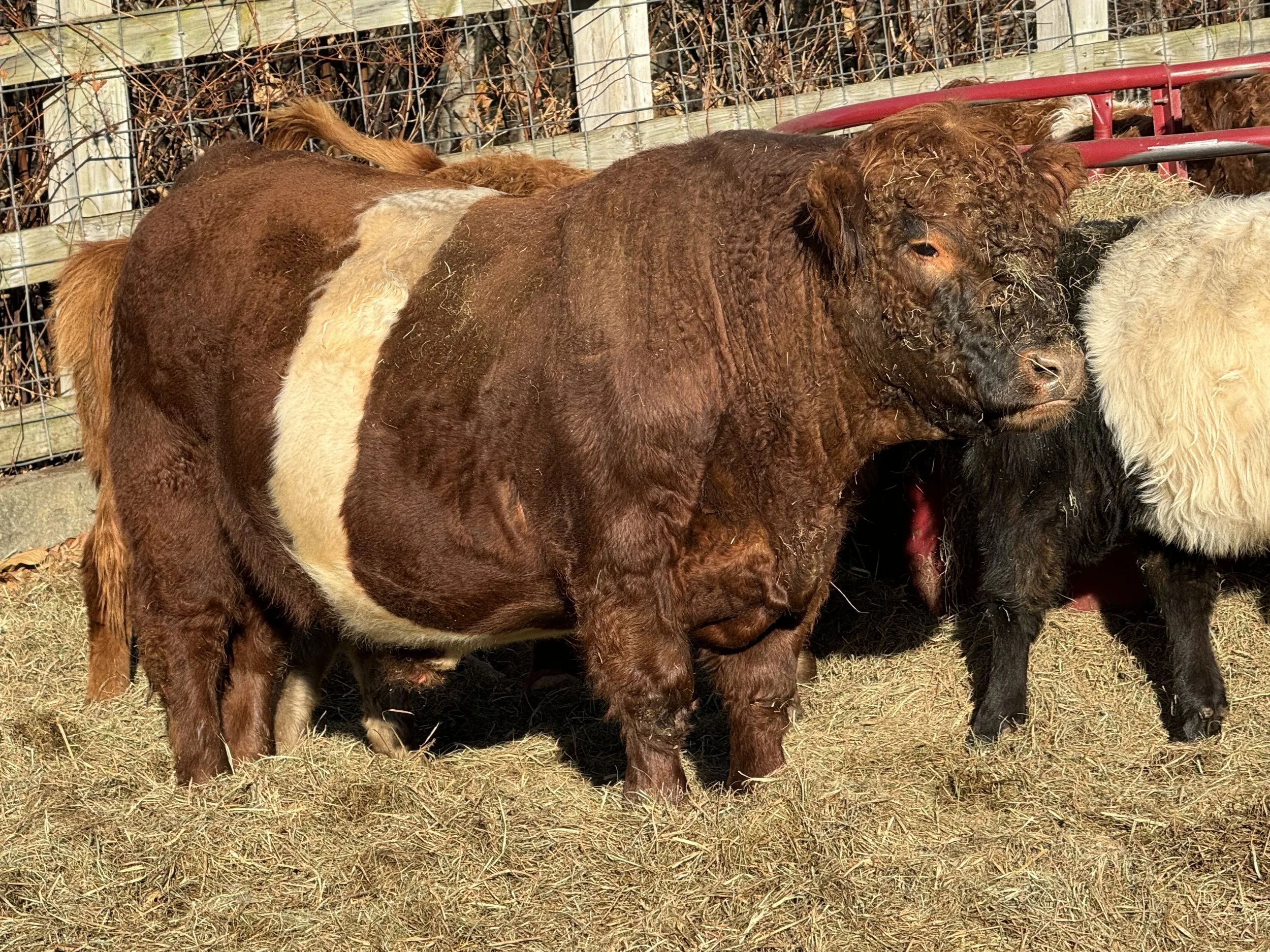 Ivanhoe has great genetics with all three colors. He dam produces offspring with longer fuller coats of hair. His sire is out of Meadow View Princess in Red which is one of our strongest red females in our herd and his sire is Meadow View Red Mtn Fleetwell which was the last herd sire from Meadow View Farm before they retired from raising Belties.